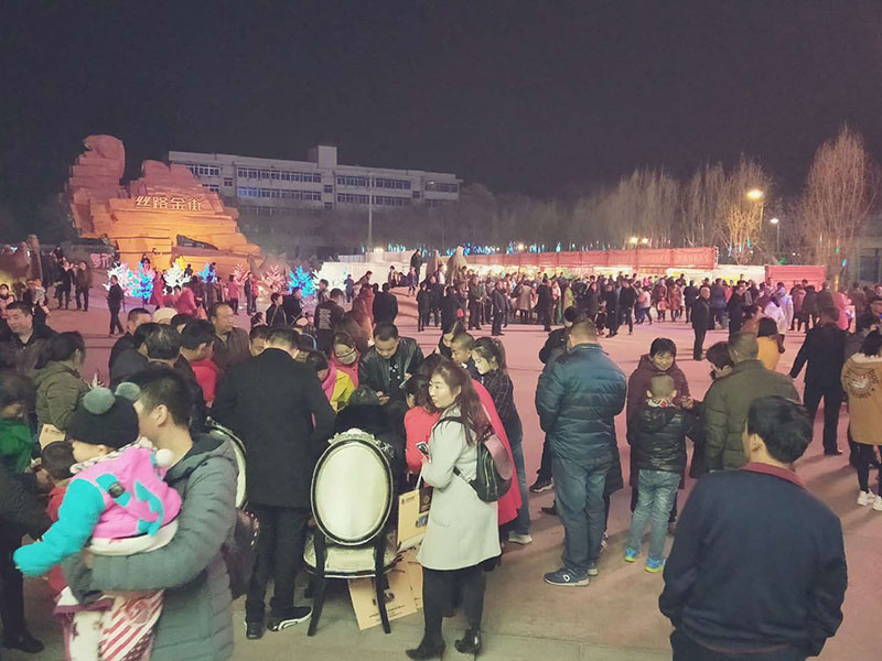 為豐富張掖市民的精神文化生活,營(yíng)造喜慶溫馨的節(jié)日氛圍,迎合賞燈逛廟會(huì)的傳統(tǒng)習(xí)俗,促進(jìn)絲路金街住宅銷售,絲路金街項(xiàng)目整合嫁接社會(huì)資源,將一年一度的新春燈會(huì)引進(jìn)項(xiàng)目。燈會(huì)自臘月二十五起便盛大開(kāi)幕,為期二十多天時(shí)間內(nèi)累積接待客戶超兩萬(wàn)人。