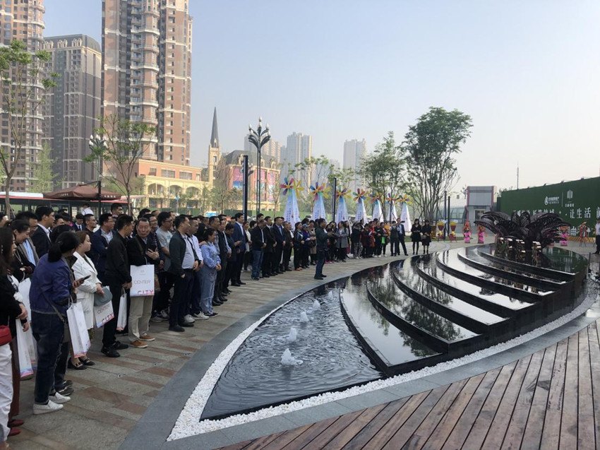 開放當天,置業(yè)公司工會主席、副總經理石磊、總工程師王學明及建投相關單位領導共同上臺剪彩,宣告營銷中心正式對外開放。匯聚在百酈錦城示范區(qū)的房地產業(yè)界人士、知名媒體及眾多客戶共同見證這一期待已久的時刻,活動現場人頭攢動,大家紛紛拿起手機,記錄下眼前美好的景色。